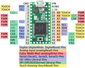 - 14 Digital-only and 10 Analog/Digital pins are accessible around the exterior of Teensy 3.0, and available when used on a breadboard. 10 more Digital-only pins, and 4 more Analog-only pins are accessible at interior and bottom-side pads.