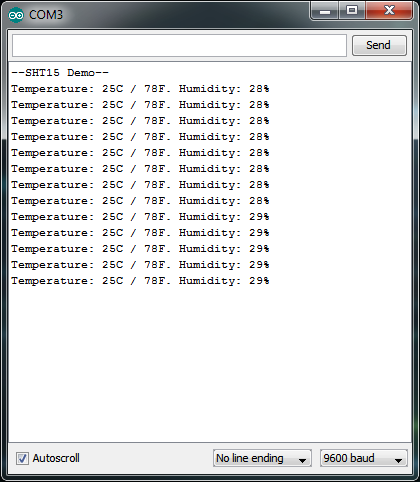 | Demonstration sketch for Hobbybotics SHT1x humidity/temperature sensor | |