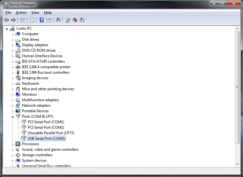 3. Go to Device Manager on your computer and expand the Ports (COM & LPT) field. Right-click on the USB serial port and select -> properties -> port-settings tab -> advanced. Set the baud-rate to the appropriate setting for your controller.