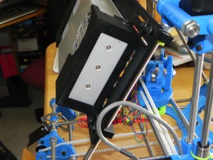 Naturally, after printing many designs from Thingiverse, I wanted to embrace the RepRap movement and print a 3D printer.  I scoured the RepRap wiki for ideas and settled on the Ecksbot printer which is a derivative of the Prusa Mendel.  Building your own 3D printer is not for the faint of heart but, the savings and knowledge gained is worth the journey.  The first issue I ran into is the Ecksbots files are designed to be printed on a larger build platform than what is available on the Replicator.  This posed a problem when I wanted to print the Y-Carriage.  A request made to the Ecksbot creators yielded a resized Y-Carriage that fit on the Replicator’s build platform.  If you plan to build your own and intend to use the Replicator to fabricate the parts, be sure to download the file labeled “Y_Cart_ReplicatorResize_x1.STL.”