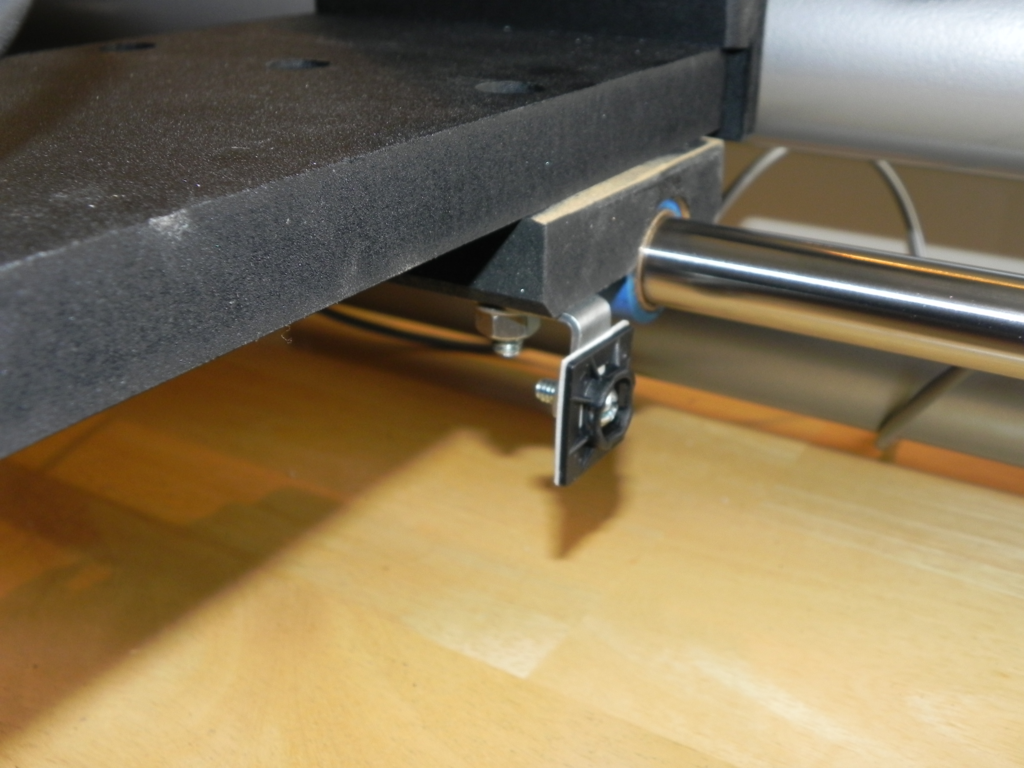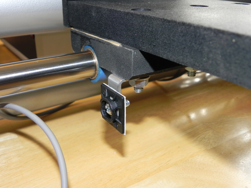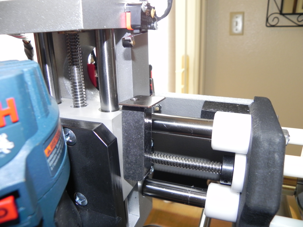 I used some L-brackets, screws and zip tie mounting bases for the Y-Axis limit switch actuators. The L-brackets are attached to the screws on the gantry mounting plates. The zip tie mounting bases provide a surface area to actuate the limit switches.